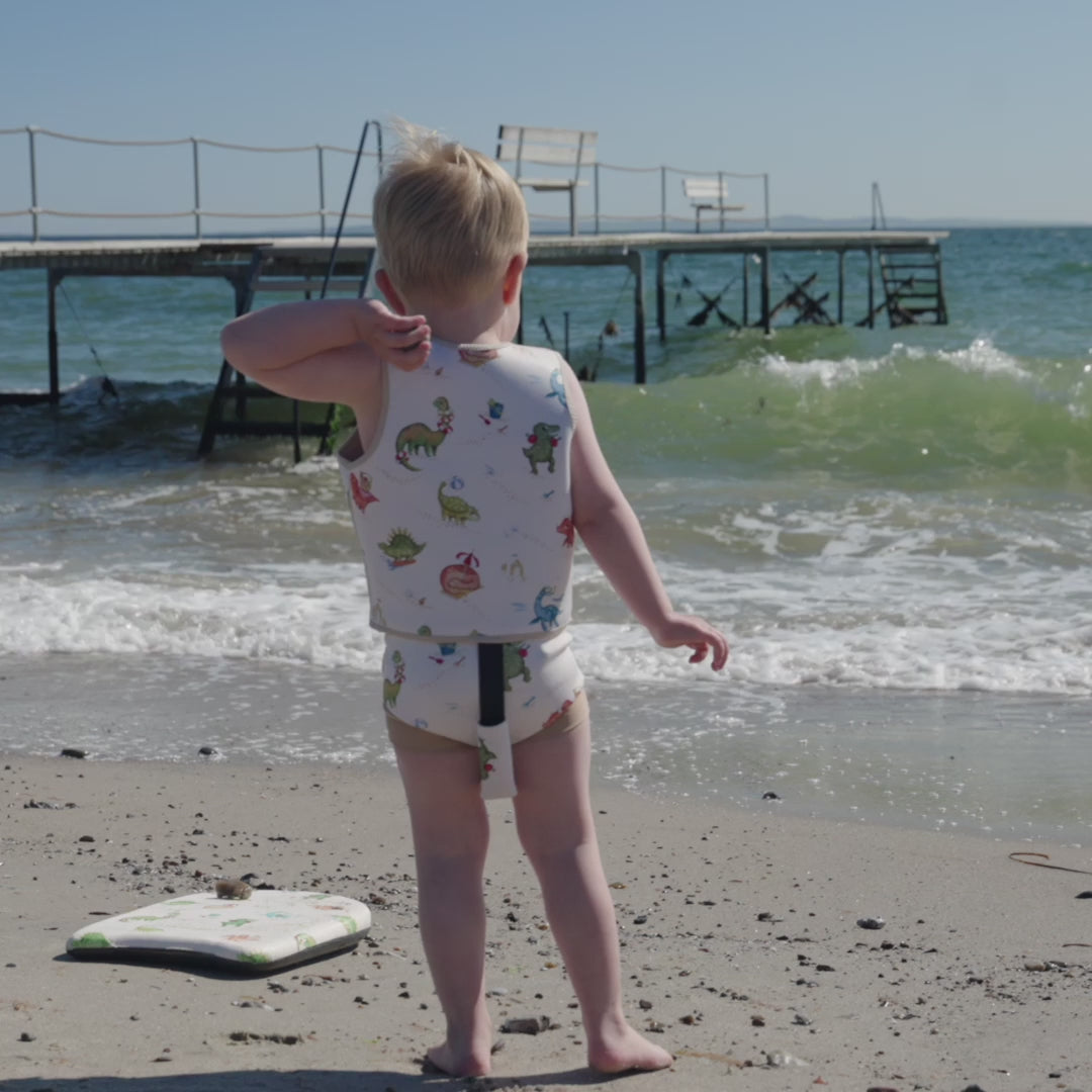 ⚠️En flydevest er ikke livreddende og beskytter ikke mod drukning. Derfor bør flydevesten anvendes under konstant og kompetent opsyn af en voksen. Flydevesten er ikke egnet til sejlads. Hold altid øje med børn, som er i vandet eller i nærheden af det.